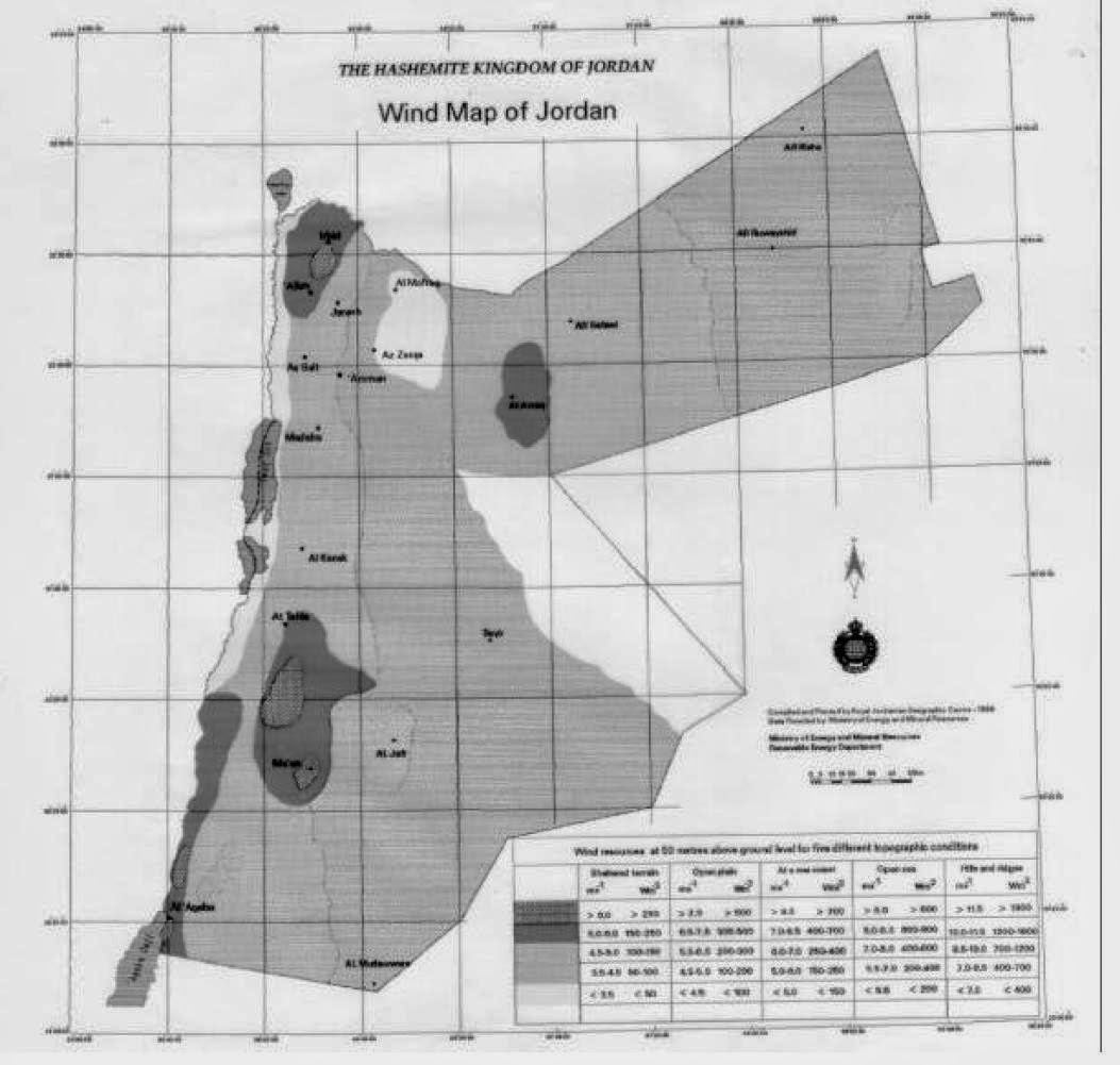 Wind speeds in Jordan are as high as 7.5 metres per second and up to 11.5 metres per second in hilly areas.