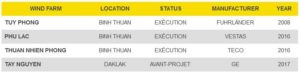 CTE WIND, from its subsidiary in Vietnam CTV, continues to grow in the Vietnamese market. Among its main developments, there is the involvement in the first wind farm in Vietnam, called “Tuy Phong” located in the province of Binh Thuan. The power output of this wind farm is of 30MW and has twenty (20) Fuhrländer turbines installed. In total, the company has achieved 80% of the existing wind developments in the country.
